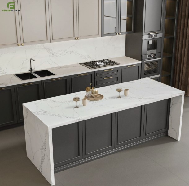 หินสังเคราะห์ แบรนด์ GREENTOUCH Solid Surface ทำจากอคิลิค 100% นำเข้าจากเกาหลี สำหรับทำ Countertops สามารถขึ้นรูปได้ตามแบบที่ต้องการ ไม่มีรอยต่อ ดัดโค้งได้ ทนกรด ทนด่าง ทนสารเคมีได้เป็นอย่างดี ไม่มีรูพรุนป้องกันน้ำซึม และไม่ก่อให้เกิดเชื้อราหรือแบคทีเรียสะสมบนพื้นผิว